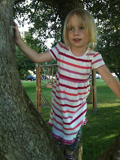 Chloe occasionally gets some handed down clothes from a little girl through someone at my work. She loves getting bags full of surprise clothes that all fit her. She likes to talk about how and when the other little girl wore the clothes. When she gets handed down clothes are the only times I've seen her get excited about trying stuff on. She likes to go through them and put them in piles of like clothing and then she always asks me if she can put on her favorite one and "wear it around for a while".